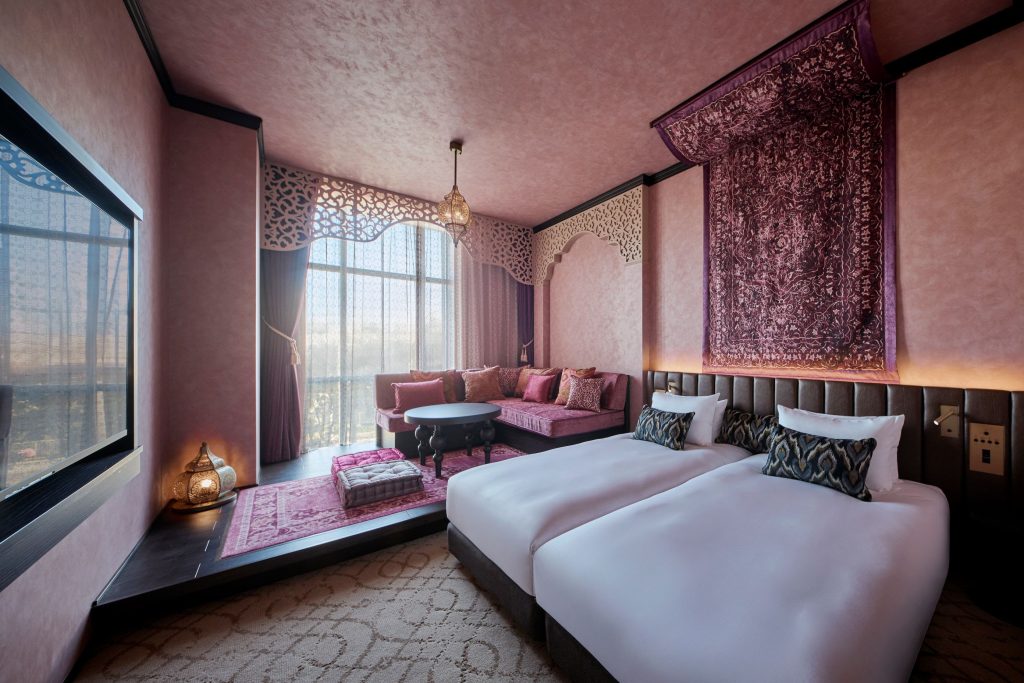 Concept rooms push the narrative further, with themes like Safari, Arabian, and Ocean offering stylized interpretations of distant landscapes. These spaces invite guests to “travel” without leaving their room, reinforcing the hotel’s identity as part of the journey itself.