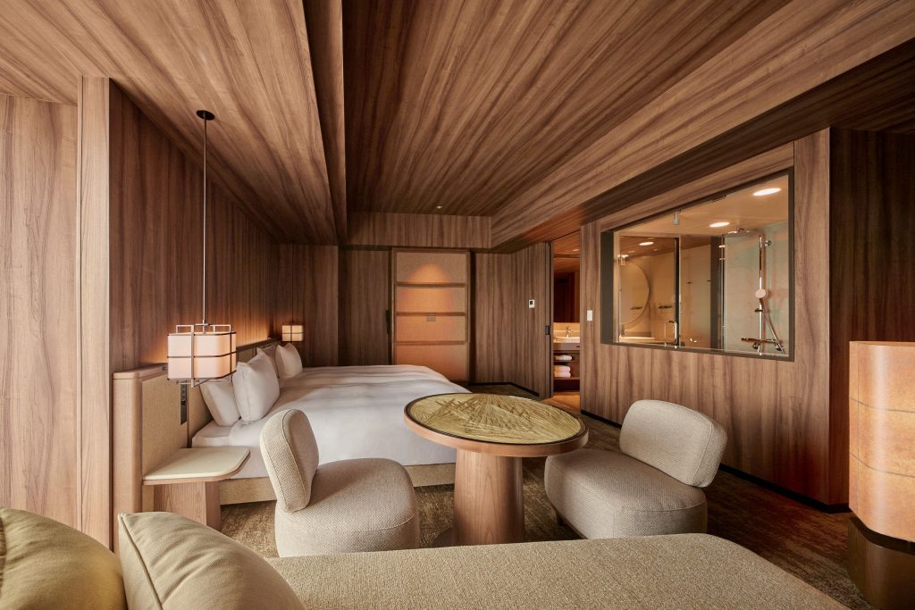 Guest rooms on the Standard Floor reinterpret amahaji, a traditional semi-outdoor architectural feature designed to protect against sun and rain while maintaining airflow. The result is a gentle interplay between indoor and outdoor space, creating a sense of openness and calm.