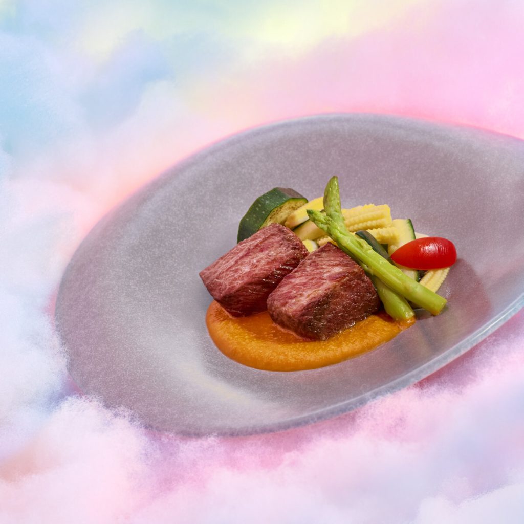For dessert, a special highlight is the “Coffee Latte Parfait”, a collaboration with Chef Double V, runner-up at the World Ice Cream Championship. This parfait features house-made café au lait ice cream infused with the aroma of roasted nuts, topped with a layer of airy, velvety milk foam, and finished with a sprinkle of caramelized brown sugar. Freshly baked “Cloud Soufflé” rises from the oven with a light and airy texture, as soft as clouds. Paired with a spoonful of honeycomb, it adds a sweet autumn note to the culinary journey.